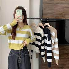 Spesifikasi: ✅ Bahan lembut, adem, dan tidak gatal ✅ Tersedia banyak pilihan warna ✅ Bahan tebal dan meral ✅ Model terbaru dan sangat viral ✅ bermotif garis dan kerah yang nyaman