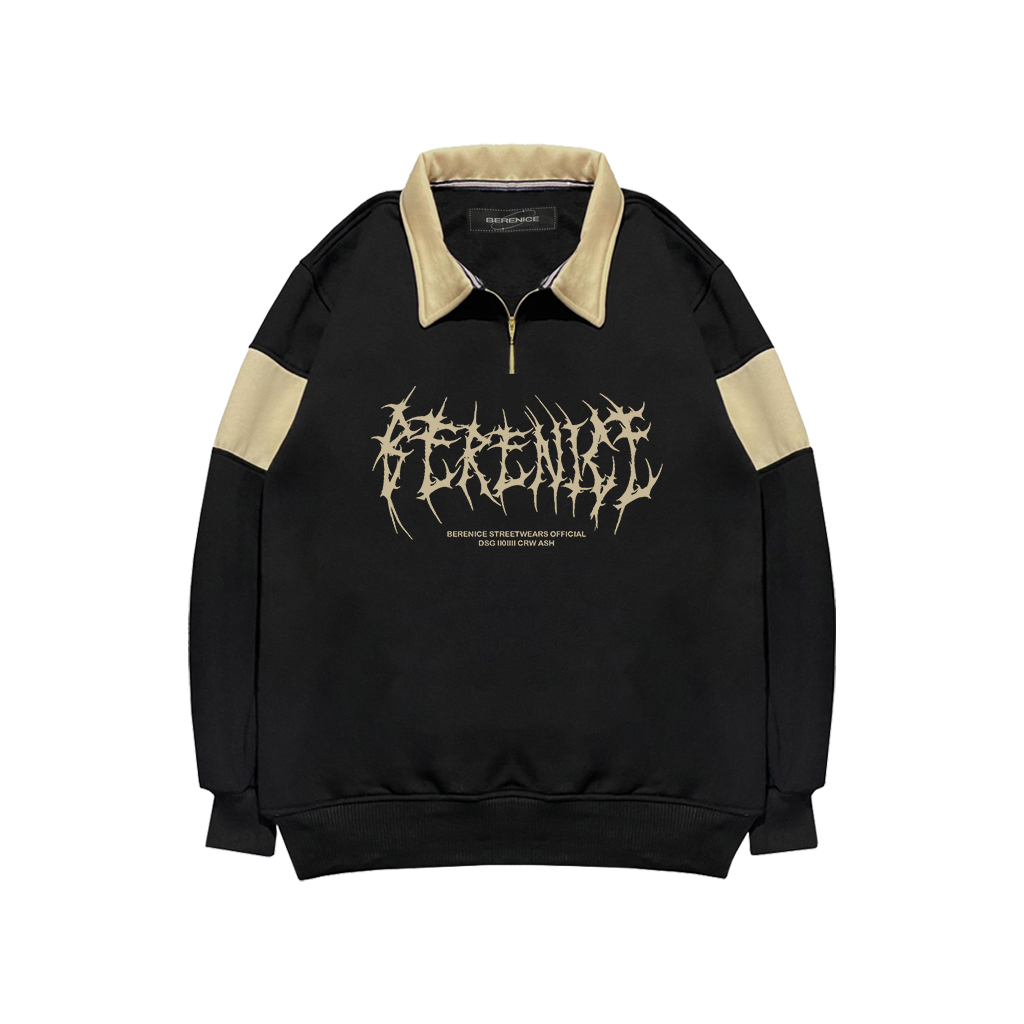 Detail Sweater Cowo Termurah Hitam Motif Bad Casual Crewneck Wanita Premium