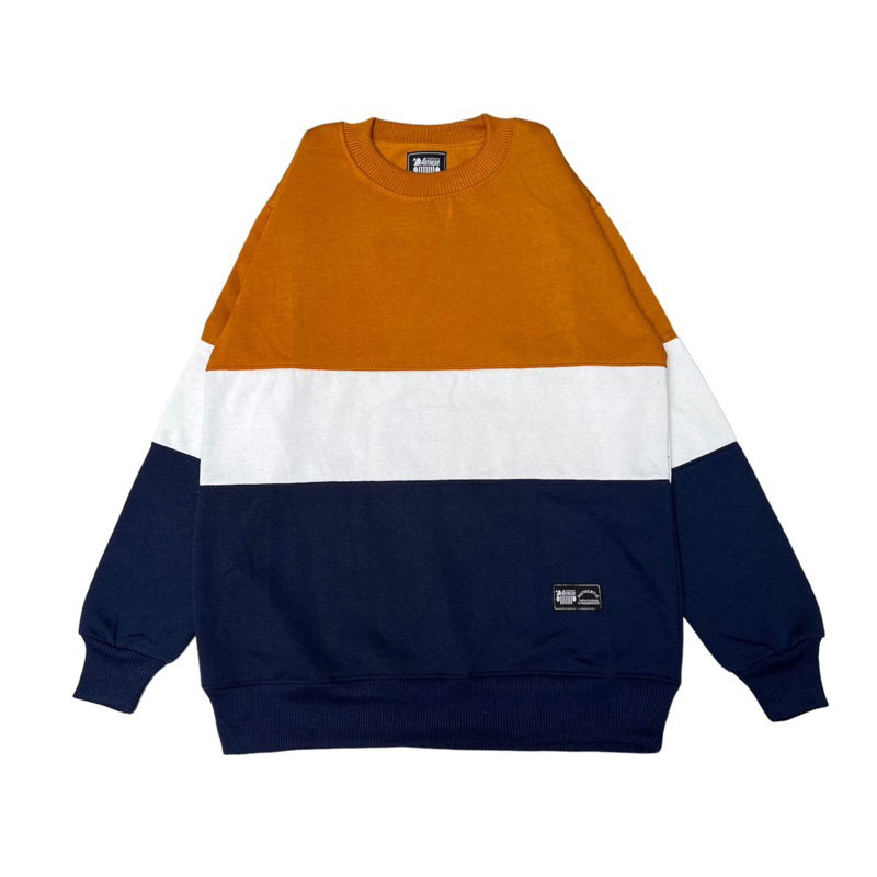 Detail Sweater Crewneck 3D Navy Putih Kubus Sweater Kombinasi Pria Wanita
