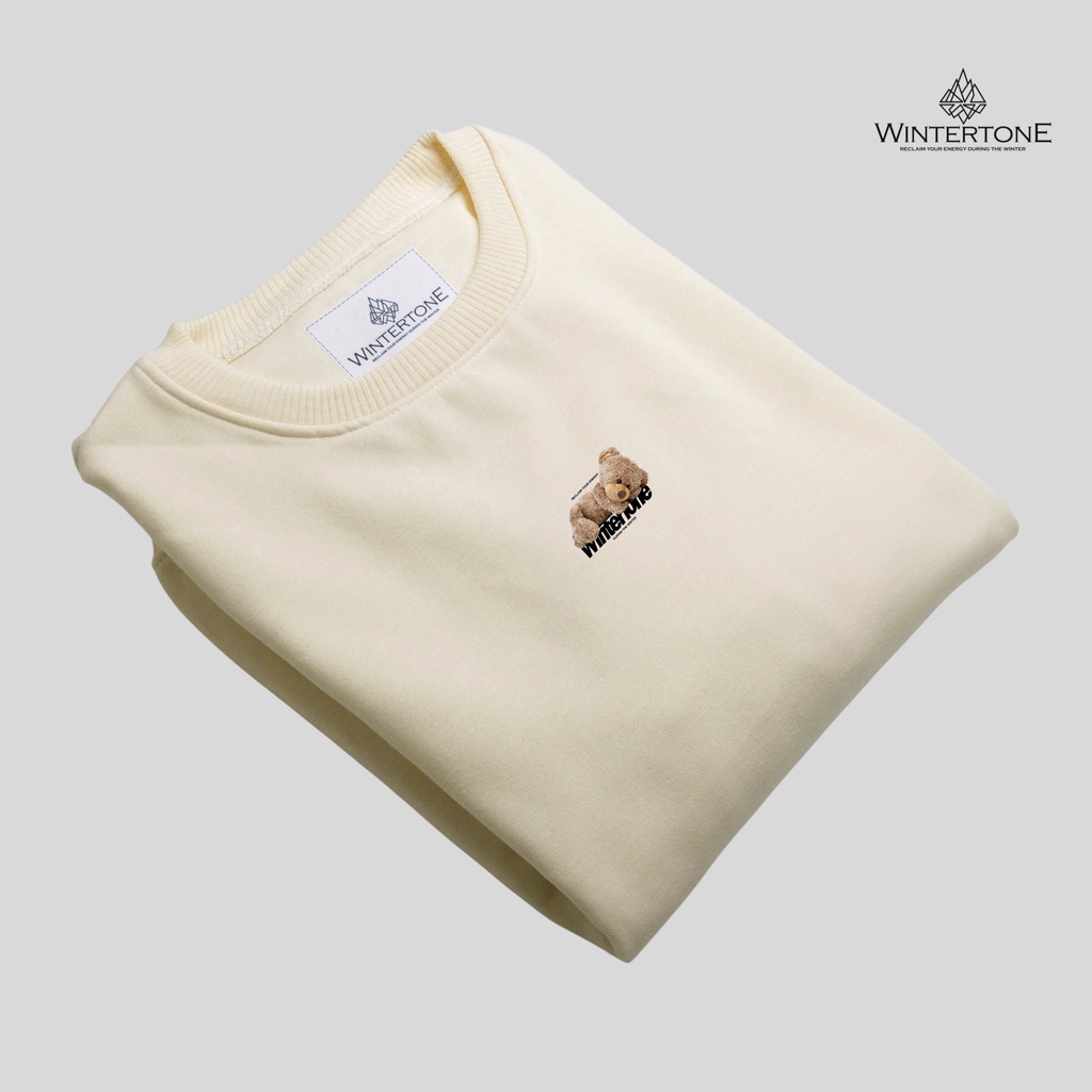 Sweater Crewneck Bear Series Cream Pria Suiter Crweneck Oversize WINTERTONE Oblong Motif Sablon Lengan Panjang Bigsize Bahan Fleece Tebal WNTRN