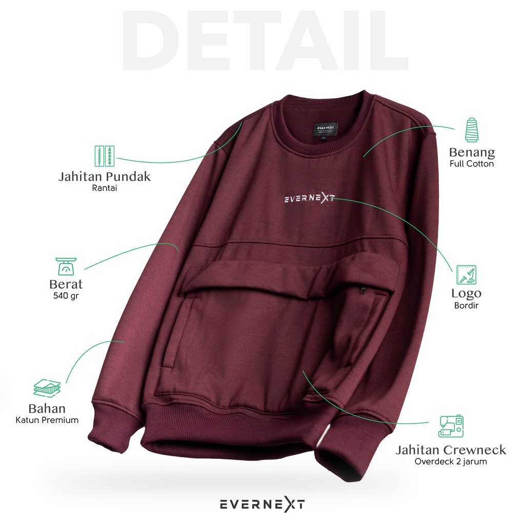 π₯Crewneck Evernext merupakan sweatshirt polos yang dibuat dengan bahan fleece kualitas terbaik. Dengan keunggulannya yang memiliki banyak kantong dan luas, Crewneck EVERNEXT ini mampu memuat banyak barang bawaanmu, mulai dari dompet, powerbank, HP sampai eaprhone di satu tempat. π₯Di design dengan simple dan casual, Crewneck EVERNEXT ini cocok untuk menemanimu segala aktivitas harianmu. Tersedia 4 pilihan warna yang menarik yang cocok untuk segala daily-outfitmu.
