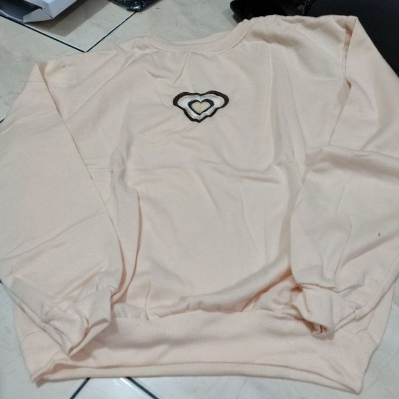 Detail Sweater fleece love sign all size fit L dan XL