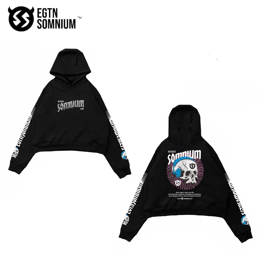 Detail SWEATER HOODIE CROP OVERSIZE PRIA WANITA EGTN SOMNIUM SKULL FLOWER | HOODIE CROP OVERSIZE PRIA WANITA PREMIUM