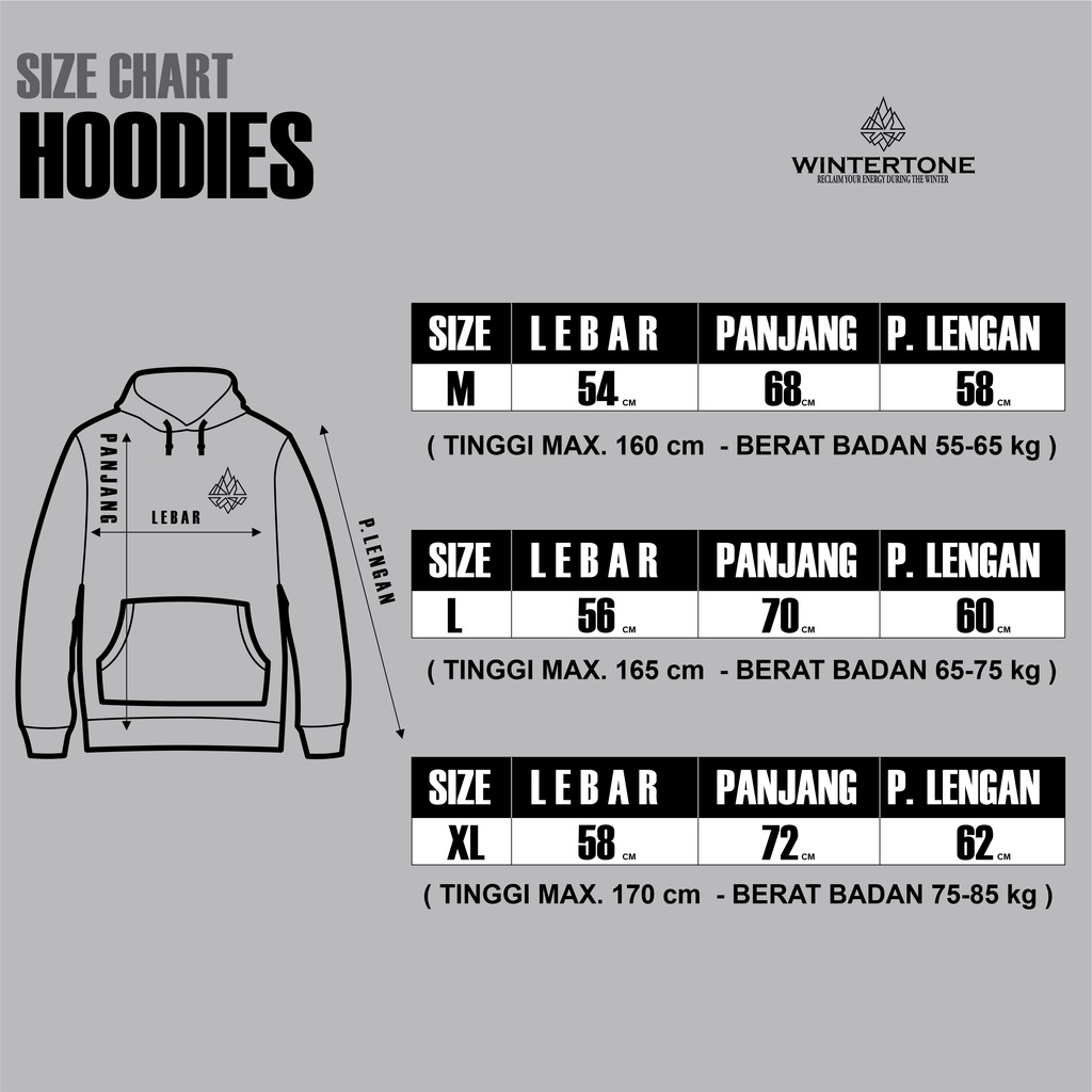 M : Lebar Dada 54cm , Panjang Badan 68cm , Panjang Tangan 58cm