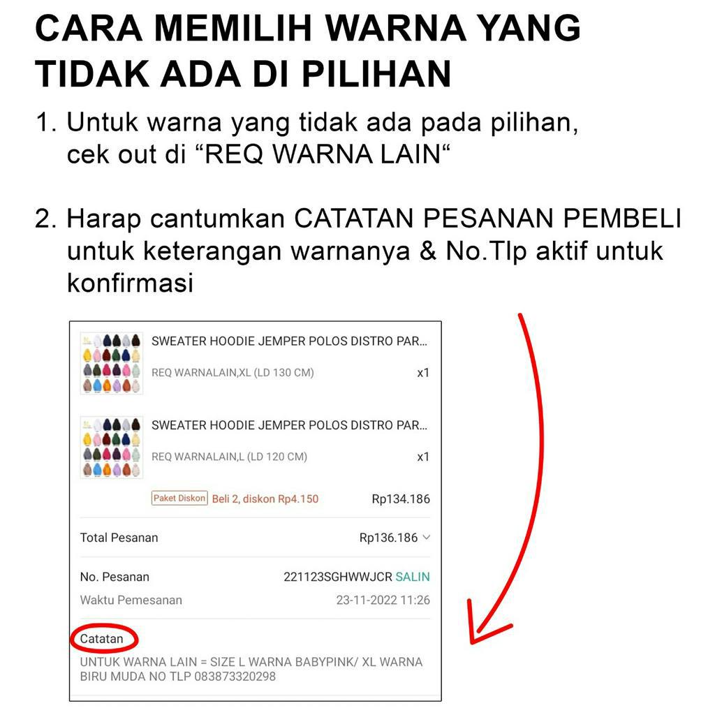 =================== UNTUK WARNA 17 KE WARNA 25 BISA DIPESAN LANGSUNG DI TAB NAMA WARNANYA 17.BEIGE 18.PUTIH 19.ABU TUA 20.KUNING 21.ABUMUDA 22.MOCCA 23.HITAM 24.NAVY 25.MAROON