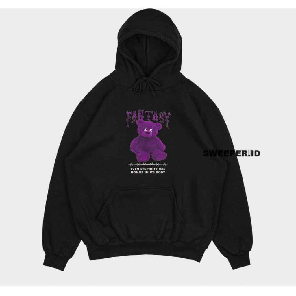 Detail SWEATER HOODIE MOTIF BEAR FANTASY PRIA & WANITA BAHAN FLEECE