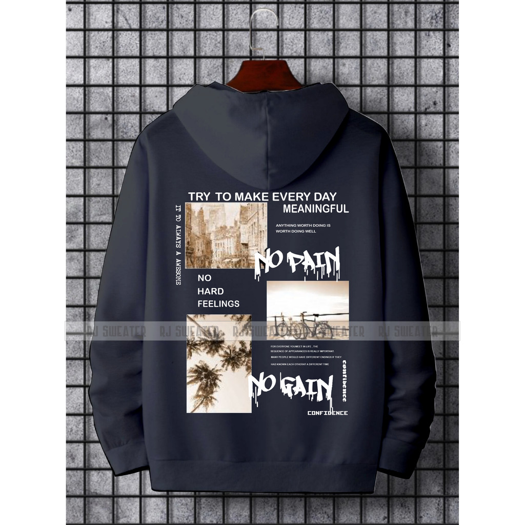Detail Sweater hoodie pria wanita NO PAIN NO GAIN / sweater pria hoodie kekinian