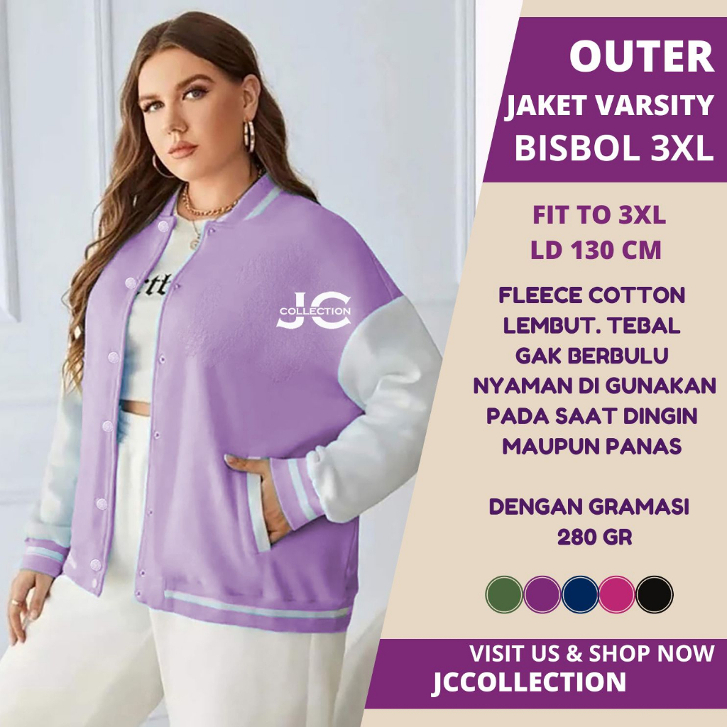 Detail Sweater Jaket Varsity Bisbol Wanita Jumbo Big Size 3XL JCCollections / Jaket Jumbo Wanita