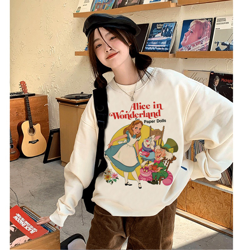 Detail Sweater Oversize Cartoon Alice In Wonderland / Sweater Hitam