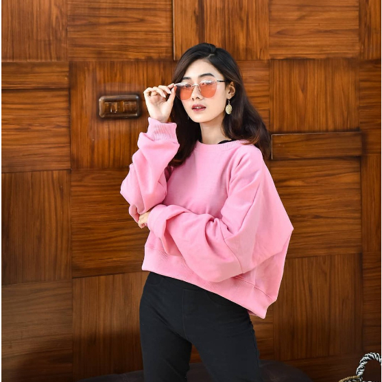 Detail Sweater Oversize Crop Polos Baju Switshirt Pakaian Wanita Bahan Fleece Korean Style Terbaru