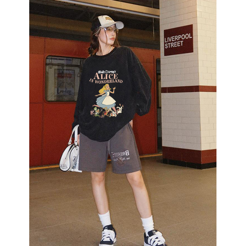 Detail Sweater Oversize Korea Lengan Panjang Cartoon Alice Motif Printed Sweater Crewneck Kekinian Baju Sweater