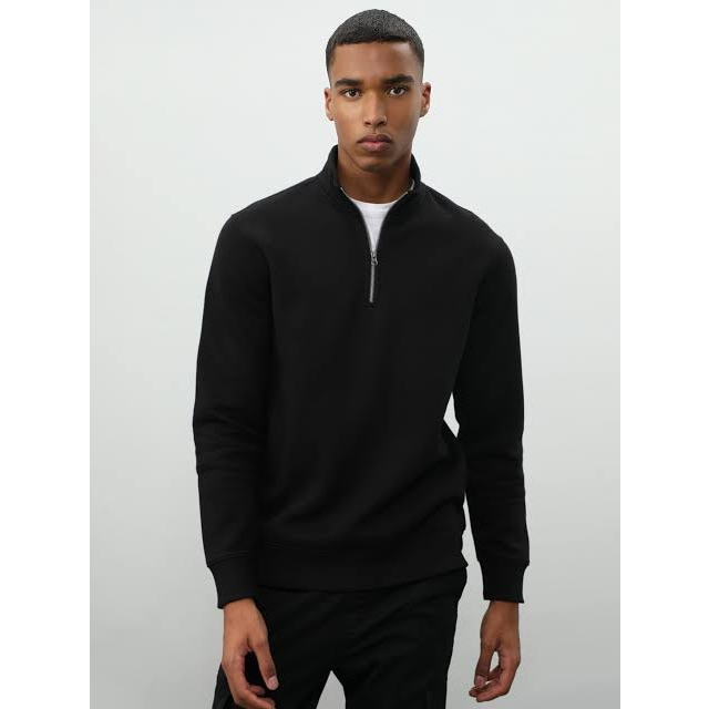 Detail Sweater Polos Half Zip Sweatshirt Hitam Premium / Sweater Zipper / Sweater Resliting / Sweater Turtleneck