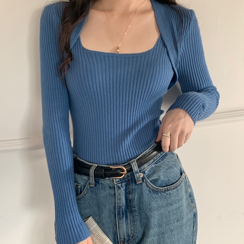 Detail Sweater Polos Lengan Panjang Switer Rajut Wanita Atasan Knit Korean Style