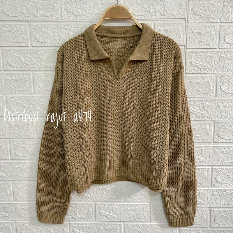 SWEATER RAJUT KERAH MOTIF GARIS SECER WANITA