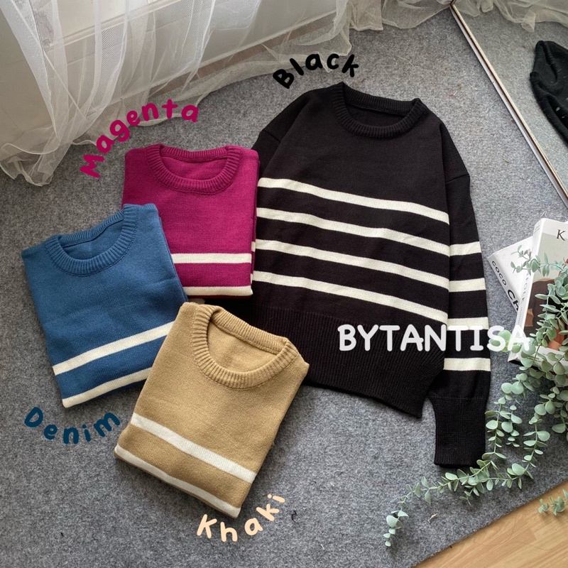 SWEATER RAJUT MOTIF GARIS CIMI BAHAN TEBAL BELAH SAMPING