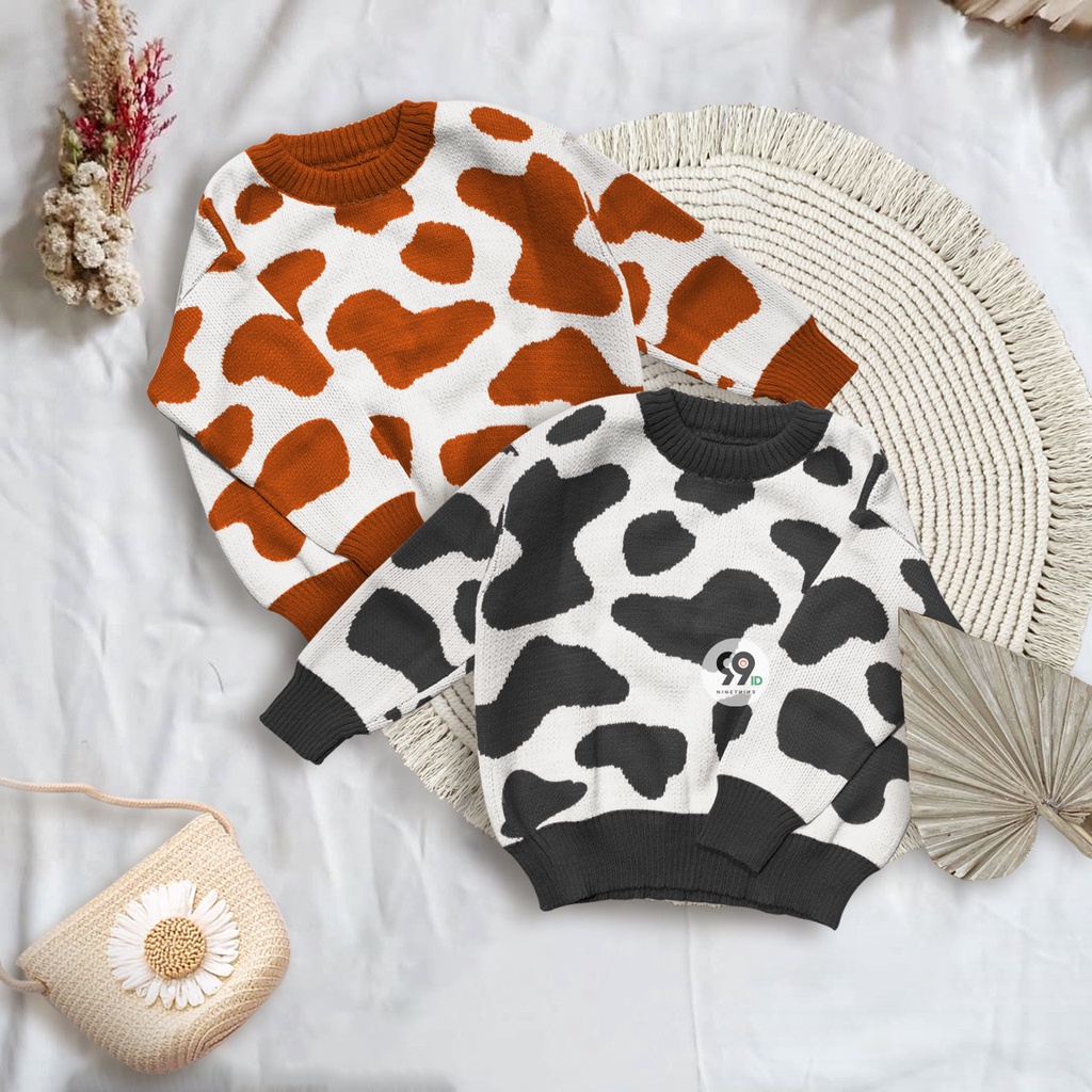 SWEATER RAJUT PREMIUM MOTIF COW BLOUSE USIA 1-6th UNISEX