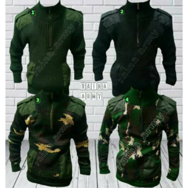 SWEATER RAJUT ARMY (Buat agan/sis semua mohon ma'af sebelum order terlebih dahulu tanya tanya stock yg ada, dan warna/ukuran yg dipilih boleh tanya tanya bahan dan kwlitas supaya agan/sis tidak kecewa Dikarenakan barang ditoko sendiri tidak ambil sana sini *CONTOH: stok tersedia tau tau kosong dikarenakan kita bukan cuma jual dionlane kita juga jual ditoko dan dikonveksi karena banyak yang langsung beli ketoko dan konveksi dan bisa juga stok tidak tersedia dionlane tetapi ditoko dan konveksi tersedia) ,,,.sebelum order dipikir dulu jangan ragu. ,,,.untuk komplen langsung dichat aja permasalahan nya. ,,, .AMANAH,AMAN DAN JUJUR MENERIMA PESANAN PARTAI BESAR DAN KECIL TOKO DAN KONVEKSI MENERIMA DROPSHIP SATUAN AMAN AMANAH .ADA HARGA ADA KWALITAS.