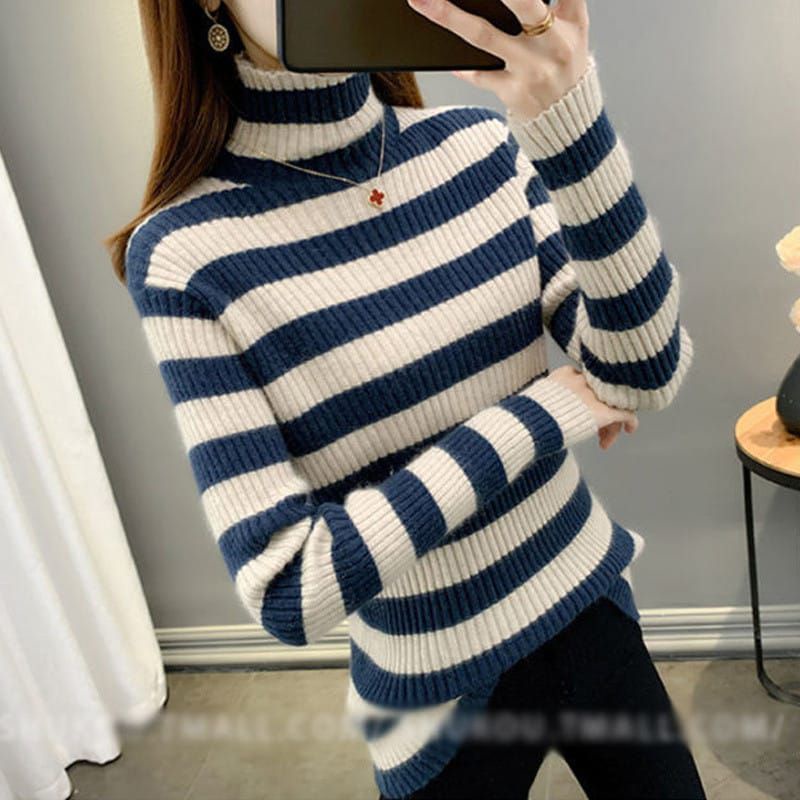 Sweater Turtleneck Salur Wanita Strip Terbaru