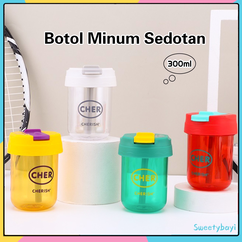 Detail SweetyBayi Botol minum sedotan 300ml Botol minum cher portable anti bocor Botol minum air