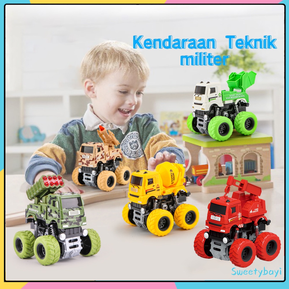 Detail Sweetybayi Mobil mobilan Truk pemadam kebakaran mainan mobil offroad 4 drive inertial tanpa batrai ban karet