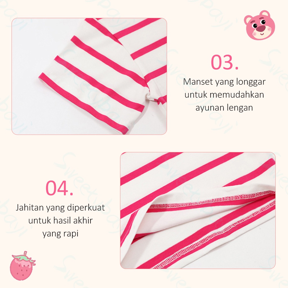 Detail SweetyBayi Pakaian baju kaos bayi anak beruang stroberi T-shirt bayi perempuan Pakaian baju anak