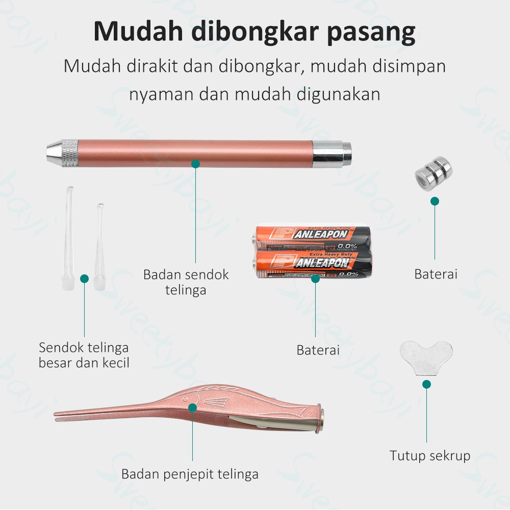 Video perkenalan produk SweetyBayi Pembersih telinga korek kuping led ear spoon earpick 7 pcs Ear cleaning endoscope. Sumber: Shopee.