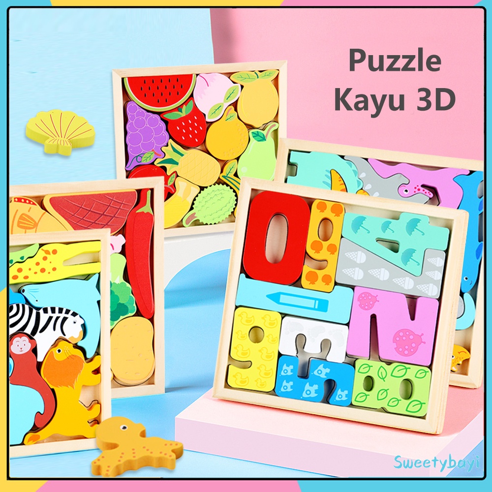 Detail Sweetybayi Puzzle 3D Puzzle kayu mainan edukasi Wooden toys cocokkan bentuk