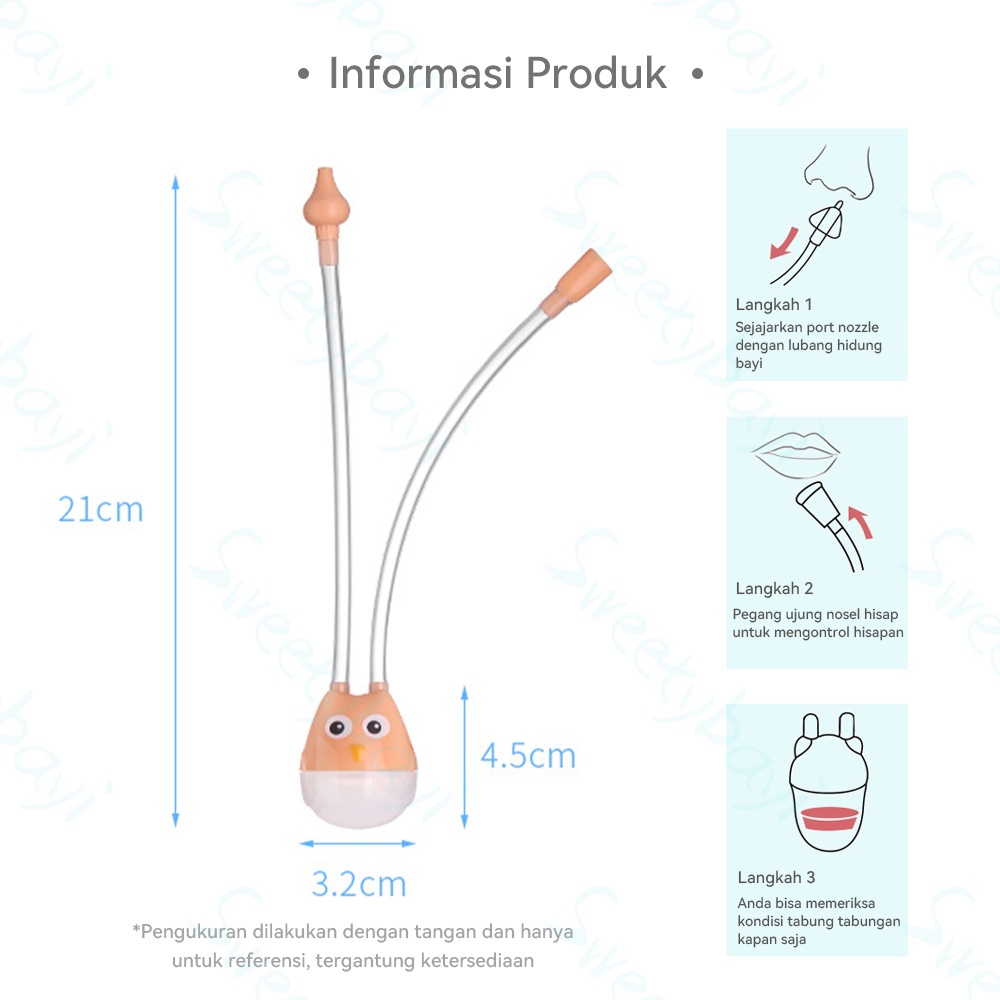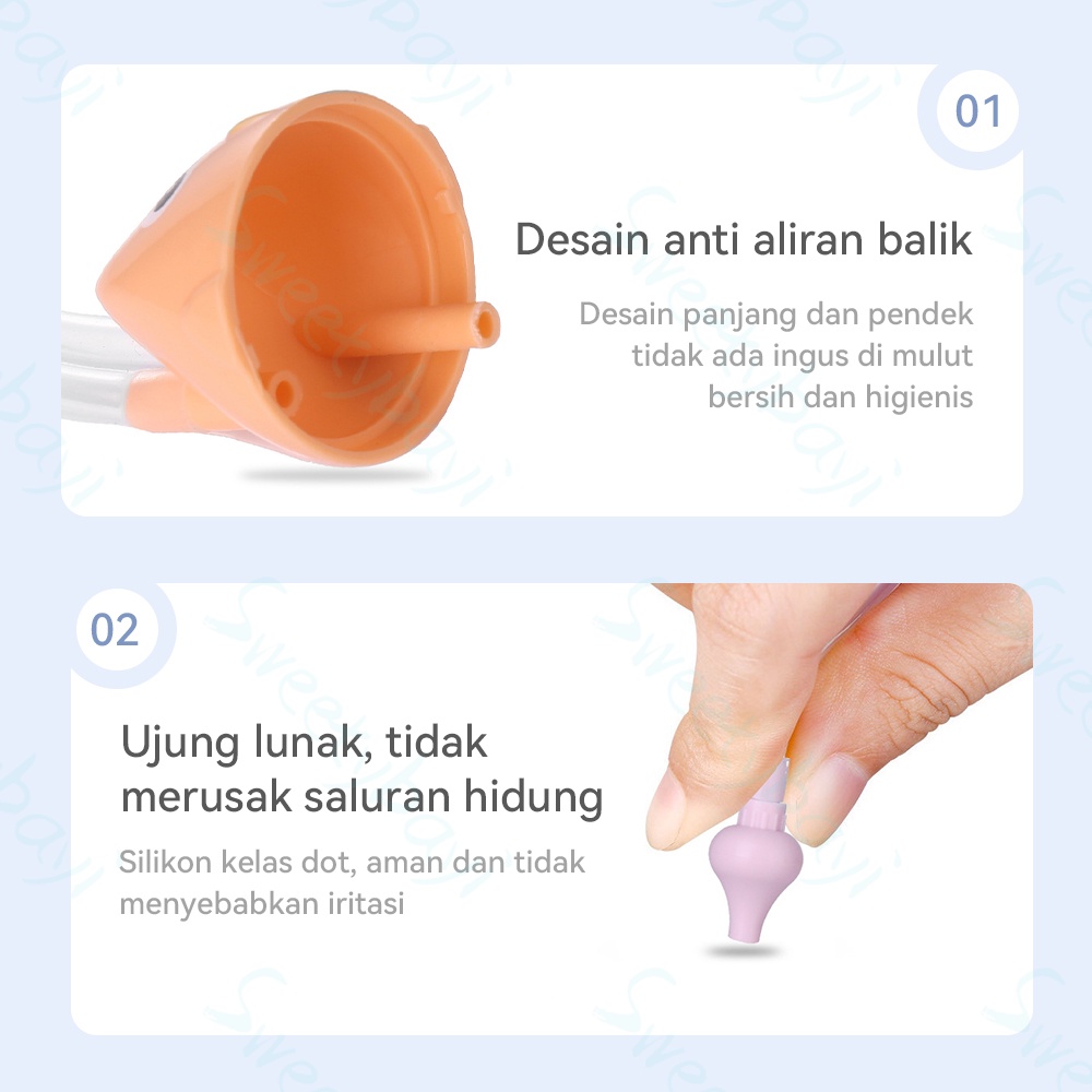🎈Cara paka: 🔴Untuk melegakan saluran pernafasan bayi dengan cara membuang ingus dari hidung 🔴Tetap higienis dan aman, bahan dari silicon, cara penggunaan mudah dicuci setelahnya 🔴Cukup sedot di salah satu bagian selang, dan bagian selang lain ke hidung bayi maka ingus akan tersedot ke tempat bawah