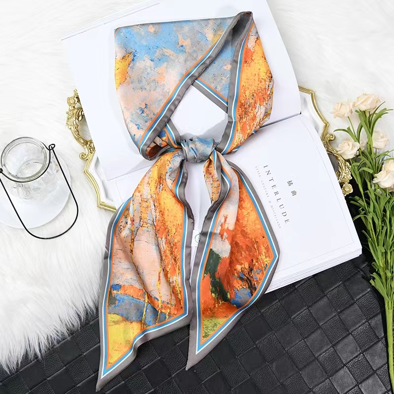 Aksesoris Fashion > Syal & Selendang > Syal 2023 Musim Semi dan Musim Panas Baru Syal Sutra Simulasi Wanita Fashion Temperamen Dicetak Persegi Kecil Syal Korea Wanita All-Match syal scarf
