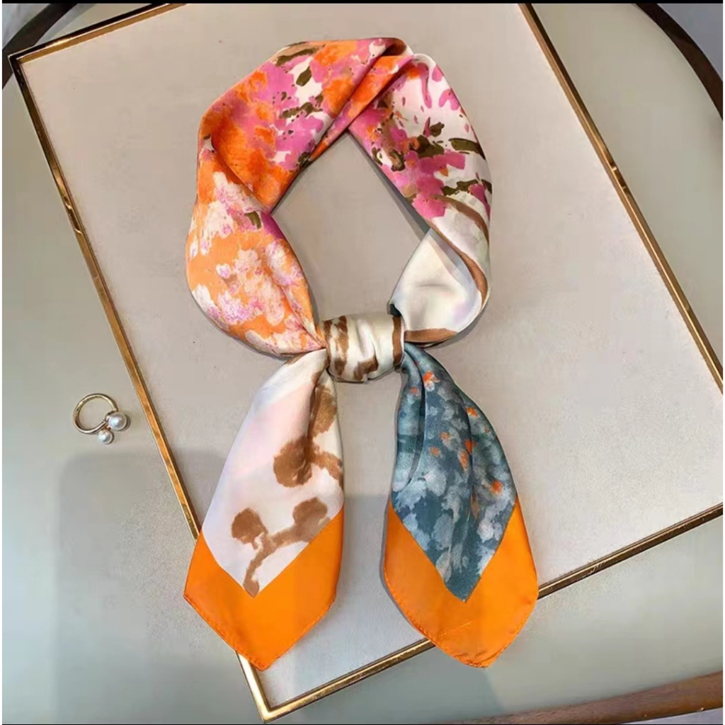 Aksesoris Fashion > Syal & Selendang > Syal baru temperamen Korea merek besar all-match syal sutra panjang tipis dan sempit wanita mencetak pita besar syal dekoratif syal syal persegi scarf