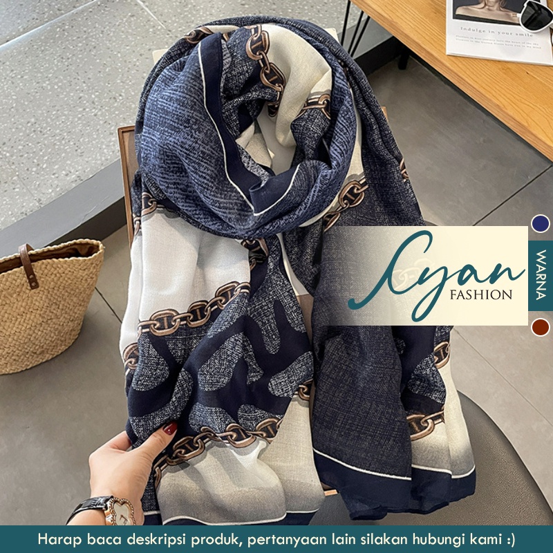 Detail Syal "Lista" Motif Mewah, bahan Katun Linen HIGH GRADE