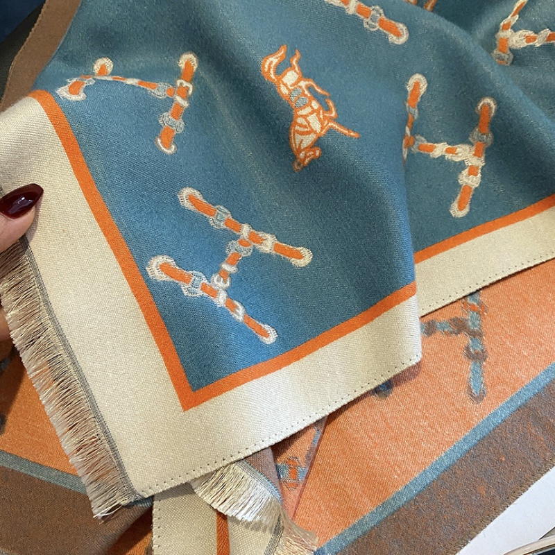 Detail Syal "Olie" 65 x 190 Motif Anggun, Motif Huruf "H" dan Kuda yang mewah, Bahan High Grade Cashmere Immitation