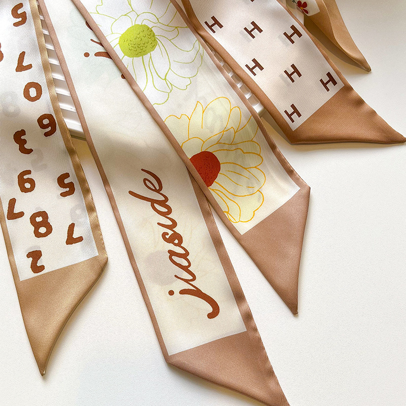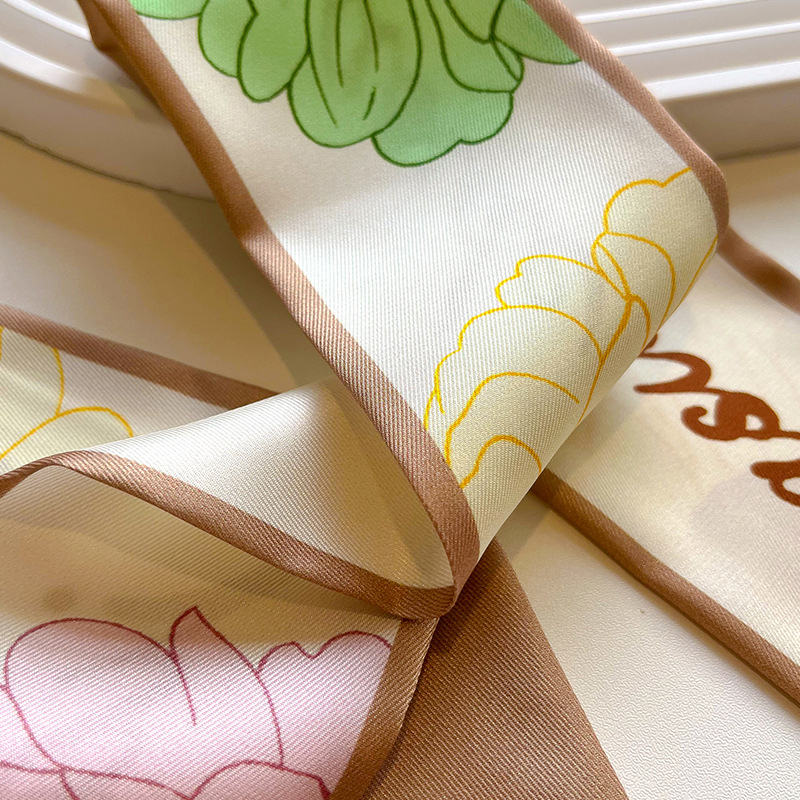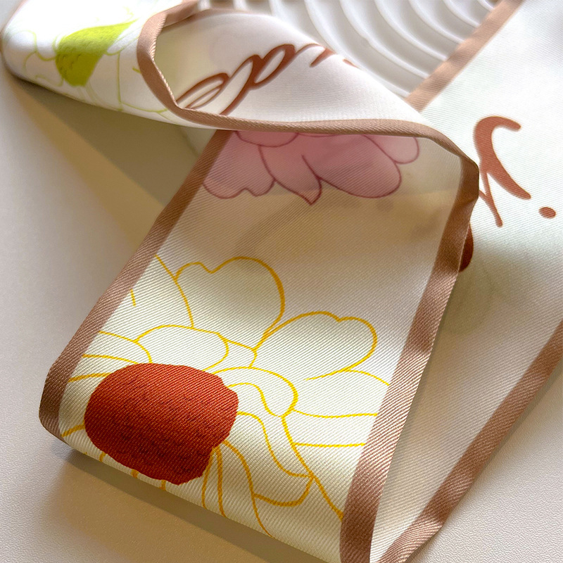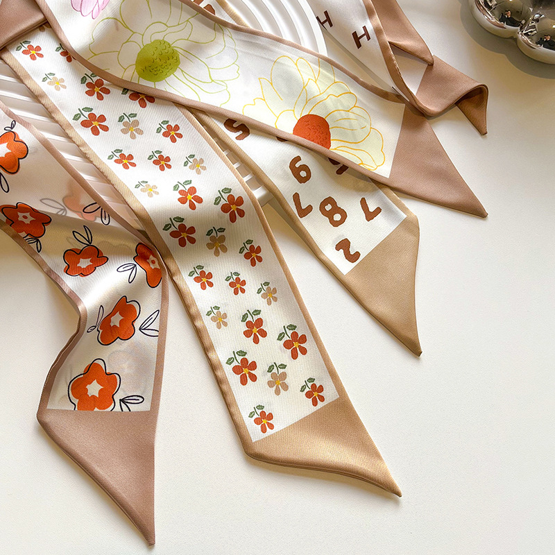 Detail SYAL PANJANG WARNA COKLAT COKELAT MOTIF BUNGA FLOWER PATTERNED SCARF NECK HEAD SELENDANG LONG SATIN SILK BROWN COLOR KAIN LEMBUT SOFT SATIN SILK SUTRA KOREA KOREAN TWILLY SHAWL BAG TAS