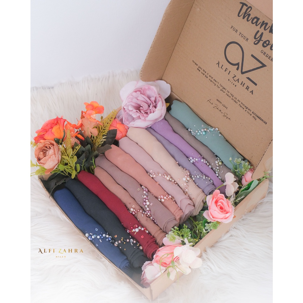 Syifa Payet (Hijab Payet Segi empat) IDR : 55.000 (Dijahit tepi, kecil, rapi) Material : Double Hycon dan Polly Catton itu sama ya dear. Double Hycon itu nama kainnya sementara Polly catton adalah singkatan dr bahan baku kain yaitu poliester 65% dan katun 35% Ukuran : 110x110 Kategori : lembut, bisa tegak, tidak nerawang