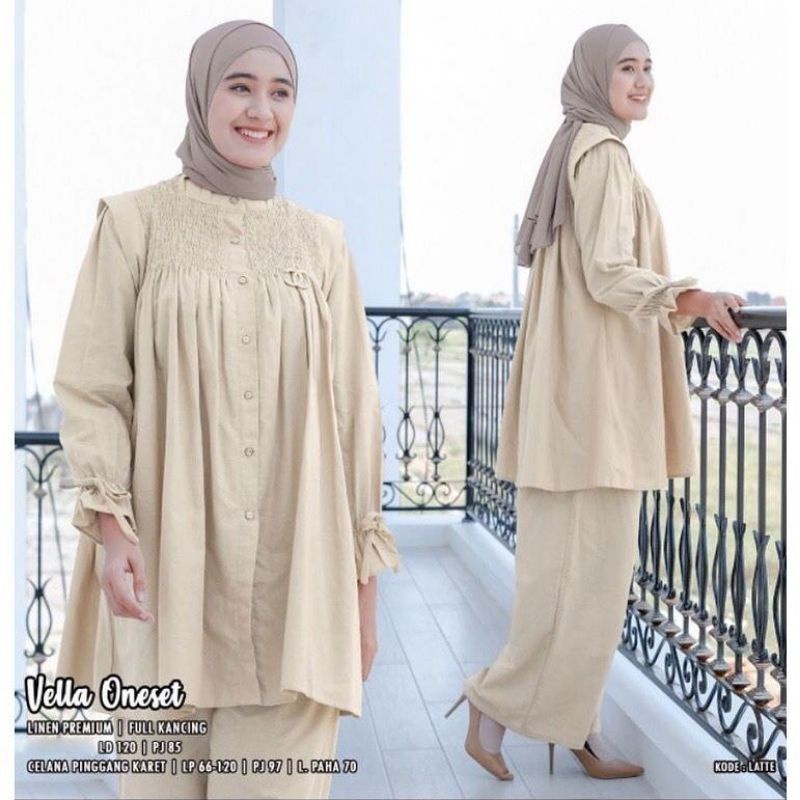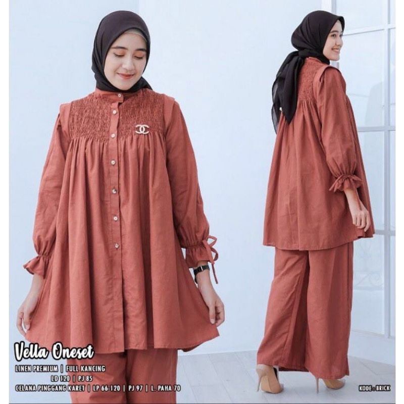 Keteran produk ; ▪kode produk :Vella one set ▪bahan :linen rami ▪kancing aktif ▪pinggang full karet