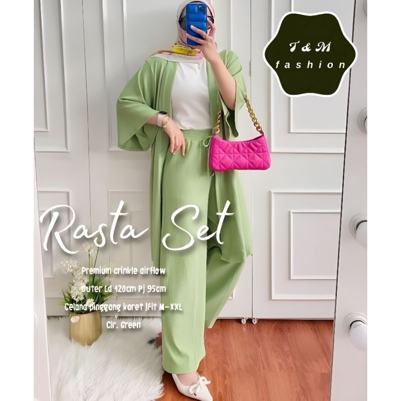 Detail T & M ~Rasta Set Outher Celana Wanita Stelan Premium Tren Terbaru Matt Crinkle Super Adem Pakaian Wanita RemaJa Masa Kini Setelan Celan dan Outher