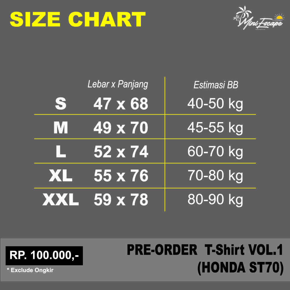 T-Shirt HONDA ST70 | MiniEscape.id * * * * * * SIZE CHART di Slide 2 Bahan : - Katun Combed 24s - Extra Soft Finishing - Sablon DTF awet dan tahan lama - Sejuk dan nyaman saat dipakai