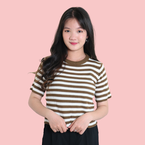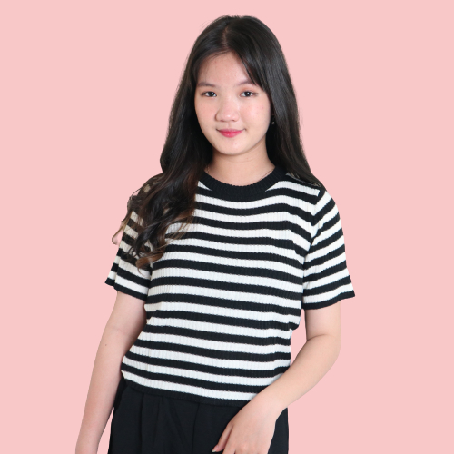 Detail T-shirt Oneck Rajut Kaos Salur Lengan Pendek Wanita
