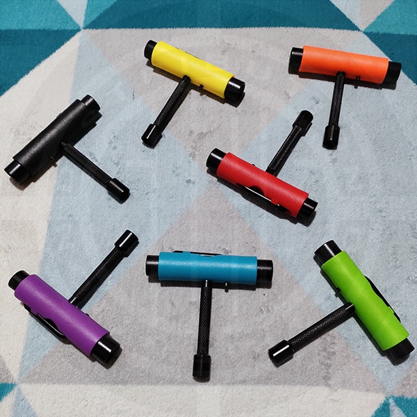 Semi-automatic T shape multi-functional wrench for skateboard, longboard, scooter repairing and maintaining,This all in one wrench for adjusting axle nuts, mounting hardware, and the kingpin nut on the top of the truck and works for all types skates boards, The integrated file allows you to file down your grip tape on skateboard, 3 different sizes of sockets (3/8in, 1/2in, 9/16in) for changing wheels, cleaning your bearing and perfect for assembling your skateboard, Phillips allen head wrench screwdriver can be inserted on the top for easy carrying. Available color : Black / Green / Light Blue / Orange / Purple / Red / Yellow.