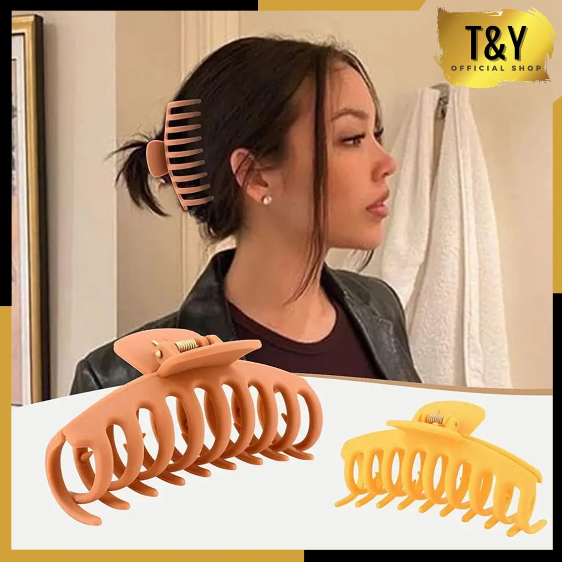 Detail T&Y Jepit Rambut Gerigi sembilan Jedai rambut wanita Besar doff ekor kuda cakar matte aksesoris rambut wanita fashion korea