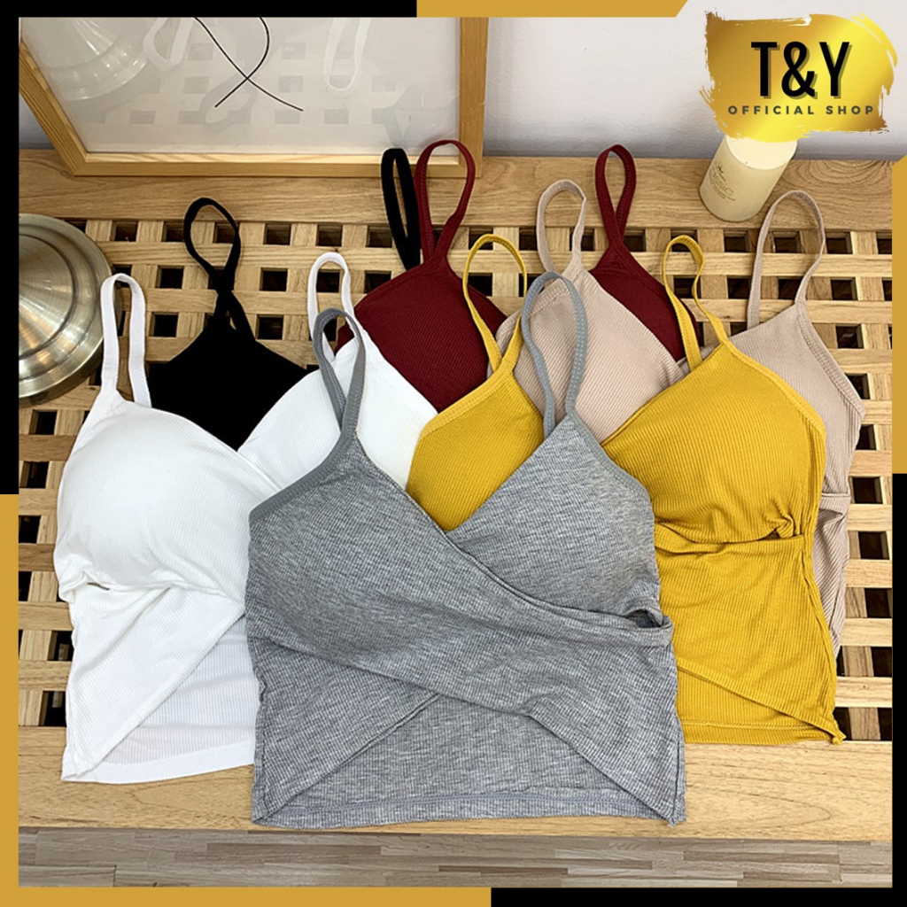 T&Y Tank Top Wanita Tampa Kawat 6813 Crop Top Model Silang Bralette Tank Top Cross Twist Tank Top Dengan Cup Tanpa Kawat Korean Girl Style