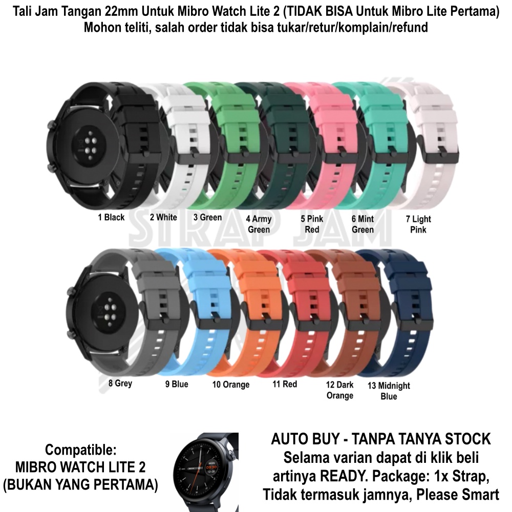 Detail T2E 22mm Strap Smartwatch Mibro Watch Lite 2 - Tali Jam Pria Karet Rubber