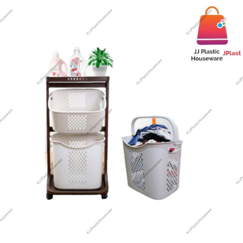 Laundry Basket Flexible Trolley Rak Warna : Cokelat Tua