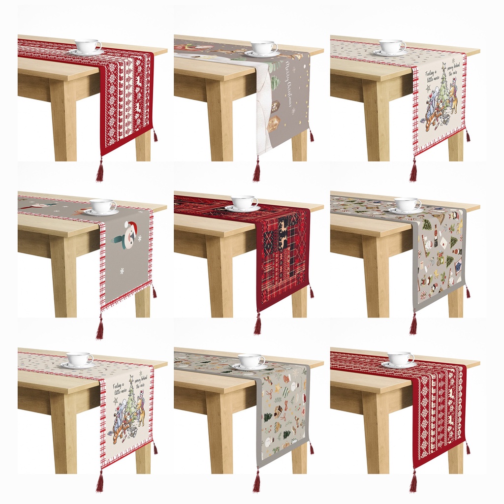 Perlengkapan Rumah > Dekorasi > Taplak Meja > TABLE RUNNER TAPLAK MEJA EDISI NATAL CHRISTMAS EDITION 140X40 DAN 230X40 CM UJUNG PERSEGI 4 GANTUNGAN TASSEL