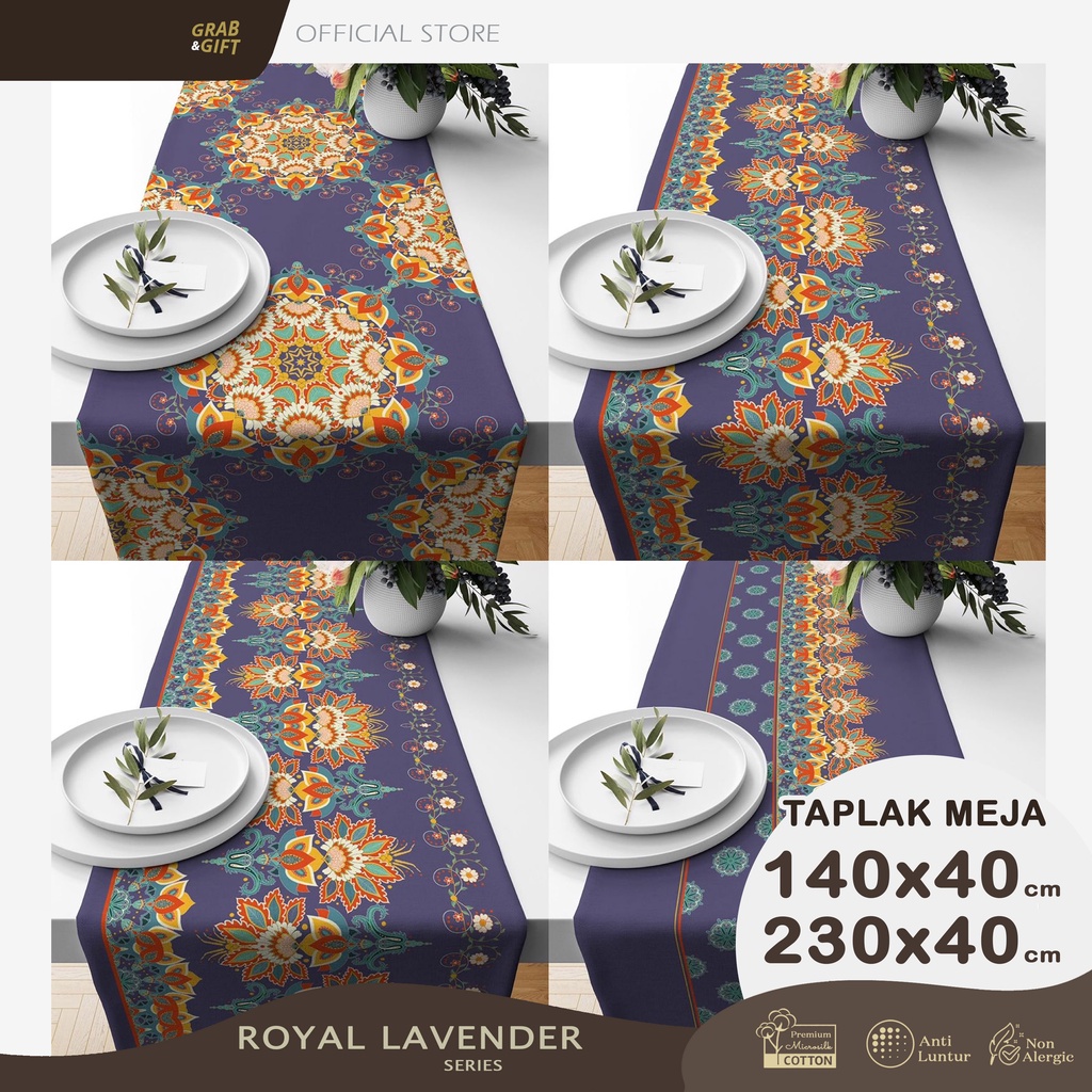 Table Runner Taplak Meja Print Motif Royal Lavender 140x40 dan 230x40 cm Ungu GrabandgiftTable Runner Taplak Meja Print Motif Royal Lavender 140x40 dan 230x40 cm Ungu Grabandgift