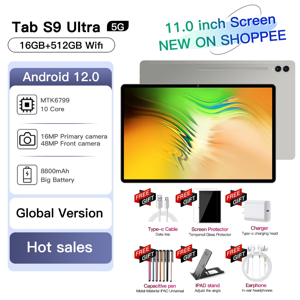 Handphone & Aksesoris > Tablet > Tablet Lainnya > Tablet PC MatePad Galaxy S9 S9+ S9 Plus Ultra Tab Baru 16GB + 512GB Tablet Android 12 11 inch Layar Full Screen Layar Besar Wifi 5G Dual SIM Tablet Untuk Anak Belajar,Table Gaming Murah Cuci Gu