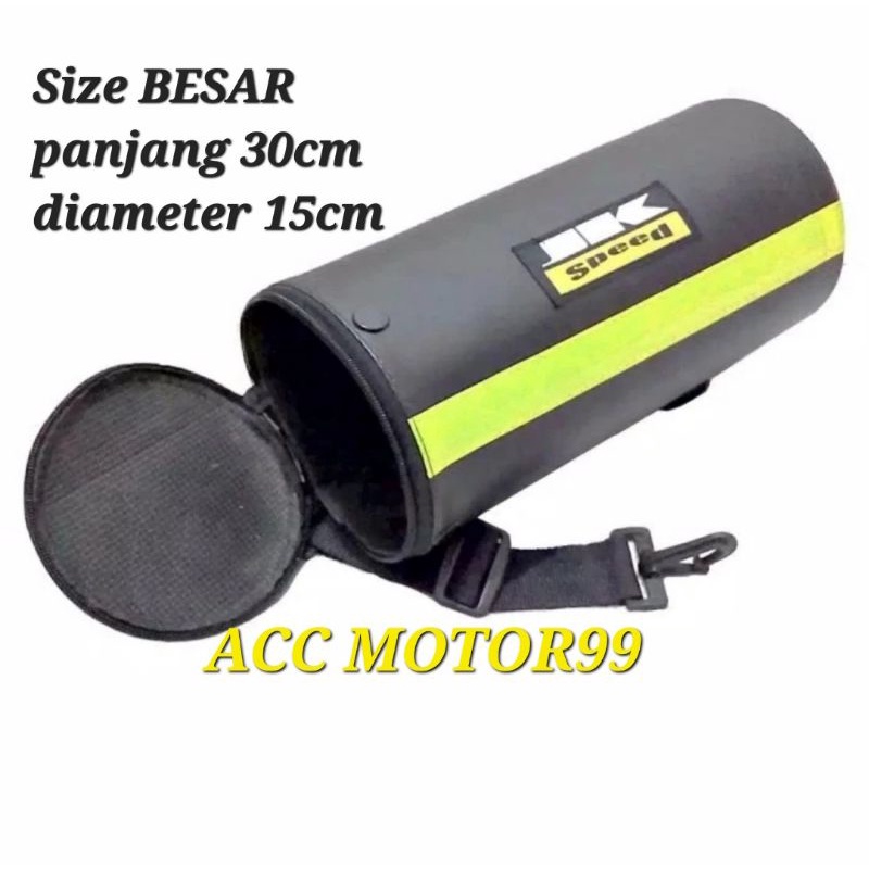 Tas tabung jk-speed ini merupakan tas motor yang dapat diletakan disamping atau dibelakang jok motor serta memiliki banyak manfaat dimana anda dapat meletakan barang-barang anda kedalamnya berupa jas hujan maupun yg lain dengan ikatan kancing yg dapat distel atau disesuaikan dengan gagang belakang motor. Detail: - Warna HITAM strip KUNING - Dilengkapi Scotlite (bercahaya jika terkena sinar) - Bahan: Anti Air Rangka Busa Tebal Kuat dilengkapi busa didalamnya - Cocok untuk menyimpan jas hujan kanebo dll.