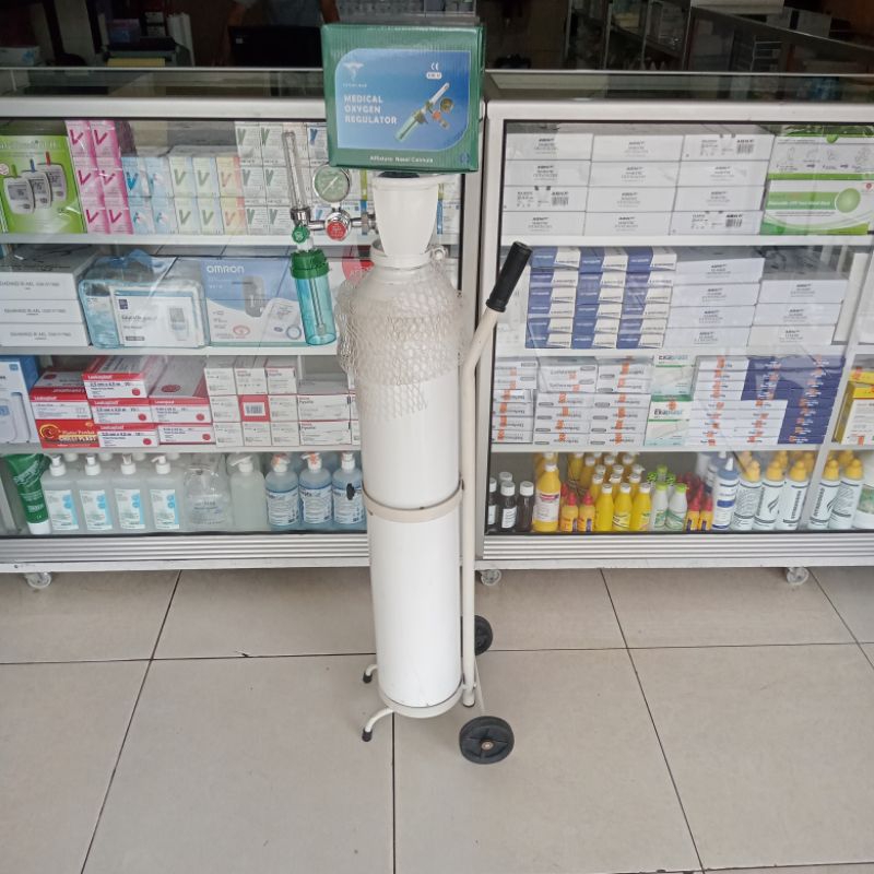 Tabung oksigen 1m3 Isi Oksigen + Regulator Pernafasan + Trolly