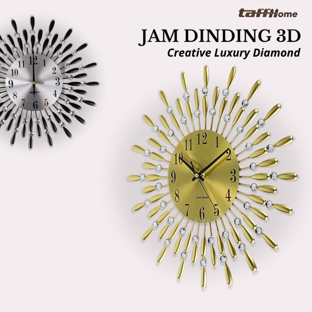 Kelengkapan Produk Rincian yang Anda dapatkan untuk pembelian produk ini: 1 x TaffHOME Jam Dinding 3D Quartz Creative Luxury Diamond 37 cm - H74 1 x Set Spare Part Jarum Jam