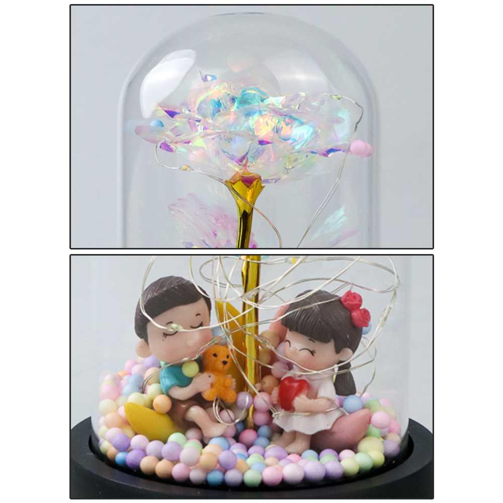 Fitur Desain Menarik Dekorasi bunga mawarnya menggunakan plastik yang didesain warna-warni dan mengkilap. Dengan begitu, dekorasi bunga menjadi sangat cantik dan menjadi lebih awet, Anda pun tidak perlu repot untuk merawatnya. Dilengkapi dengan miniatur sepasang kekasih dan bola warna-warni yang menambah sisi menarik serta menggemaskan dari lampu LED ini.
